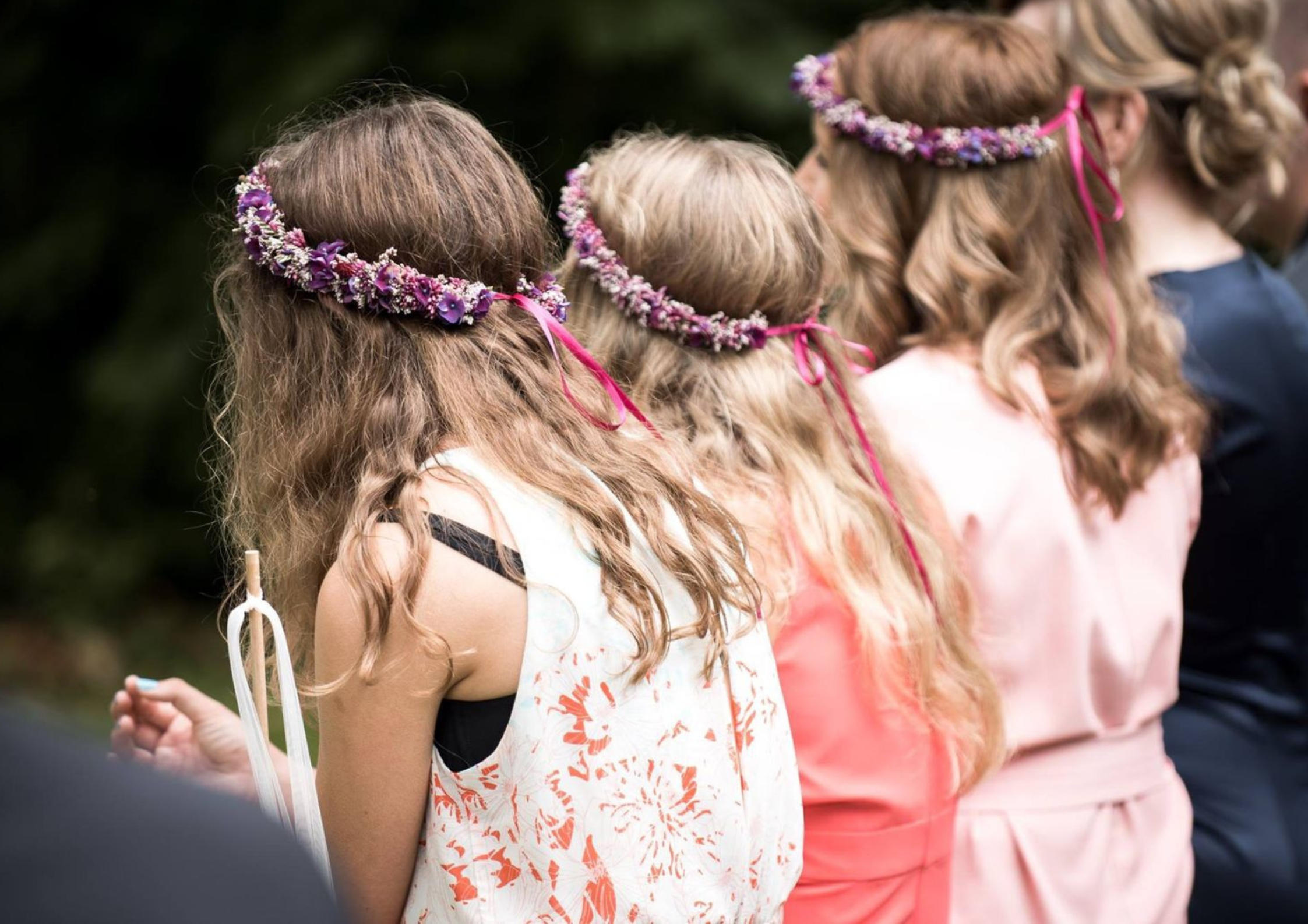 Wenn Sie kleine Blüten verwenden, ist es ratsam, nicht nur eine, sondern mehrere auf einmal zu verweben, damit das Ergebnis besser ist und die Krone dichter wird. Aber bitte Vorsicht: Einige Blumen und Blüten sondern Flüssigkeit ab.