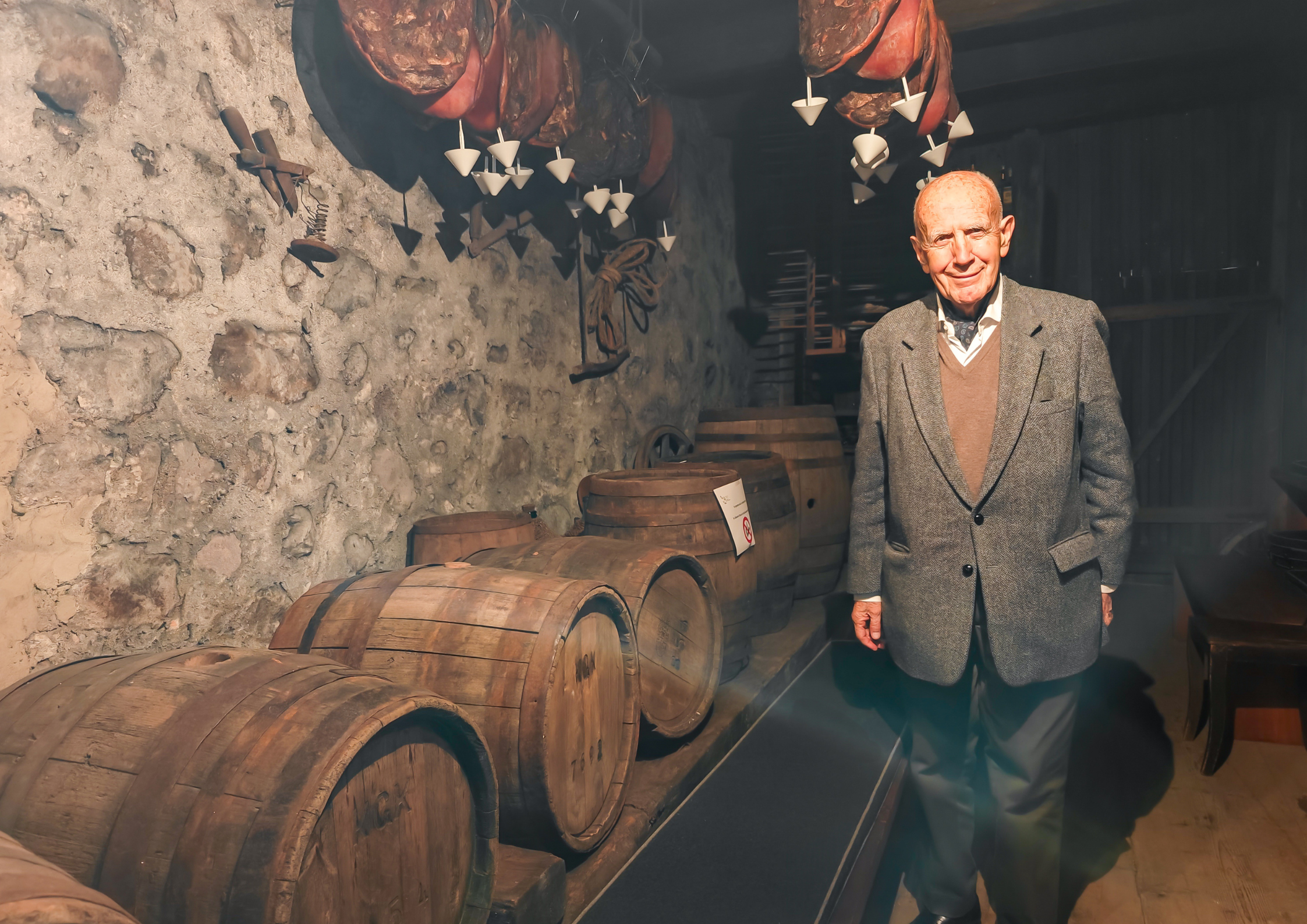 Didascalia: Lo storico Helmut Rizzolli in una delle poche cantine dei Portici rimaste intatte nel tempo.